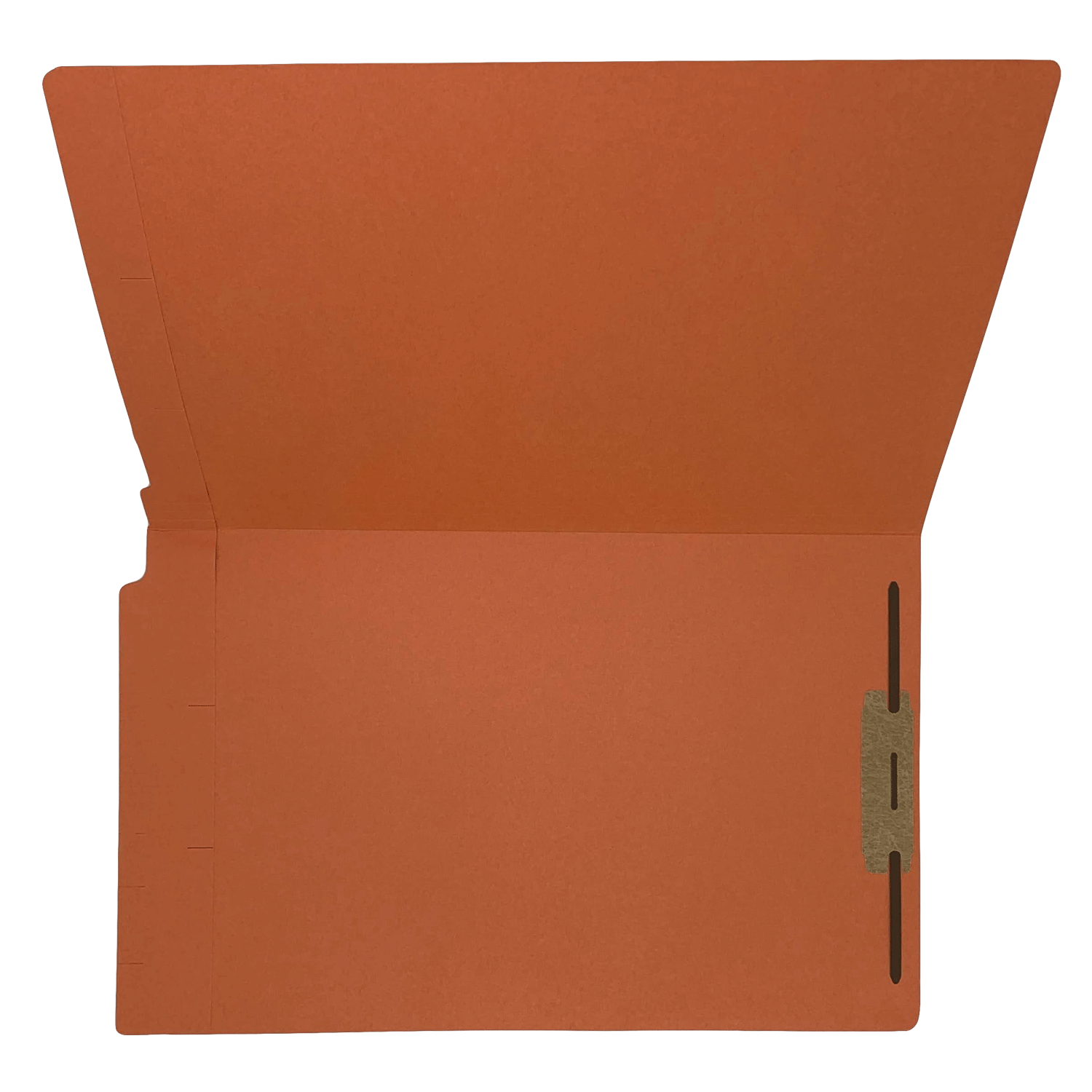 Use color within your system to indicate various types of files. These 14pt, manila stock, Orange folders feature a 2" bonded fastener attached in Position #1, as well as a two-ply end tab with scored tick marks. The tick marks allow for easy application of color coded labels. Additionally, the undercut front panel helps aid in the application of labels and helps make the label stand out for extra readability. Folder size: 15-1/4 " W X 9 1/2" H, 14-3/4" W Body, Undercut to 14-3/8".